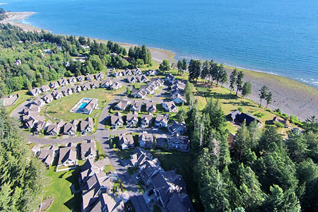 Next along the highway is Qualicum Landing, a gated 15+ acre resort development of 62 beautifully finished cottages. Residents enjoy first-class amenities, including a heated outdoor pool, two hot tubs, a clubhouse with a fitness centre, games room, pool table, and lounge, as well as a delightful private beach overlooking the Strait of Georgia.